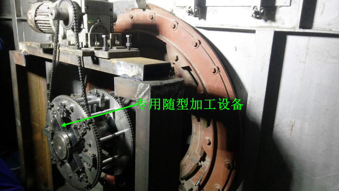 現(xiàn)場(chǎng)人員集思廣益克服了工期緊、損傷大、空間小、無(wú)起重設(shè)備等難題,采用我公司全新一代3KW激光器及現(xiàn)場(chǎng)大軸專(zhuān)用的隨型機(jī)械加工設(shè)備,僅用3天就順利完成了軸徑的激光再制造等全部工作,恢復(fù)原設(shè)計(jì)尺寸及圖紙精度要求,一次交檢完全合格。