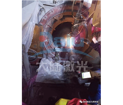 施工人員群策群力,根據(jù)現(xiàn)場實際工作環(huán)境,準備材料、制作工裝,搭建施工平臺,安裝調(diào)試設(shè)備,僅用3天時間就順利完成了軸頸的激光修復工作,加工后精度及尺寸,滿足圖紙設(shè)計要求,并一次交檢100%合格。